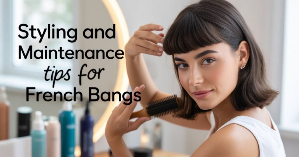 Styling French bangs is easy and requires minimal effort. You can let your bangs air dry for a natural look or use a round brush and blow dryer to add volume. Using a light styling cream or texturizing spray helps keep the bangs in place without making them stiff.