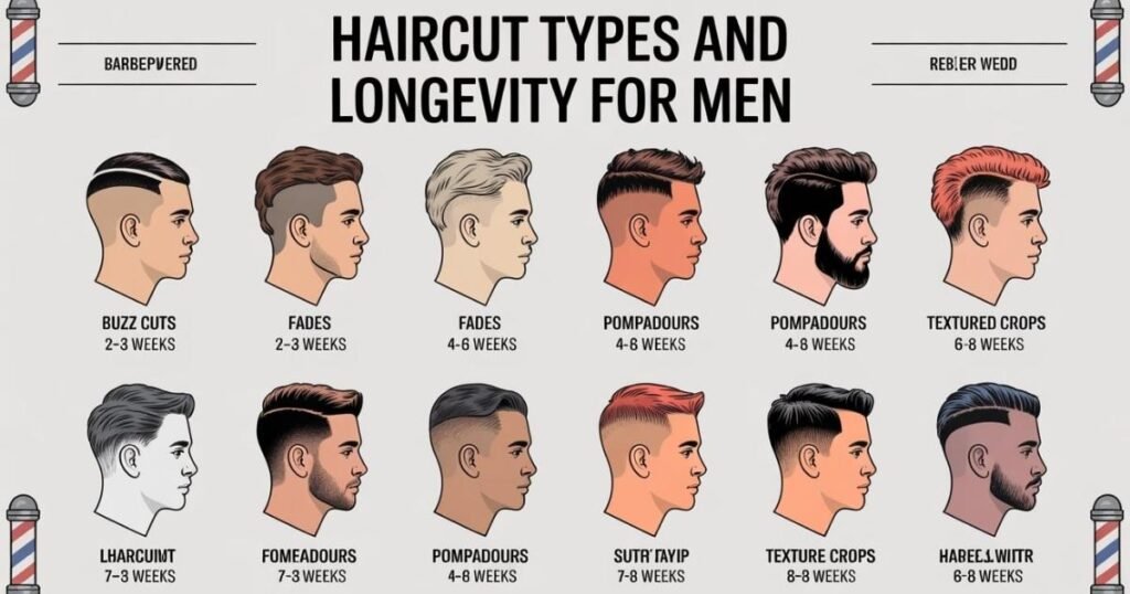 Long hairstyles demand more patience, requiring trims every 8–12 weeks to maintain long hair care and prevent split ends. Following a hair length guide helps plan barber visit frequency and saves money. A simple haircut schedule table can clarify intervals, allowing men to maintain neatness, style, and hair health effectively without overdoing frequent visits.