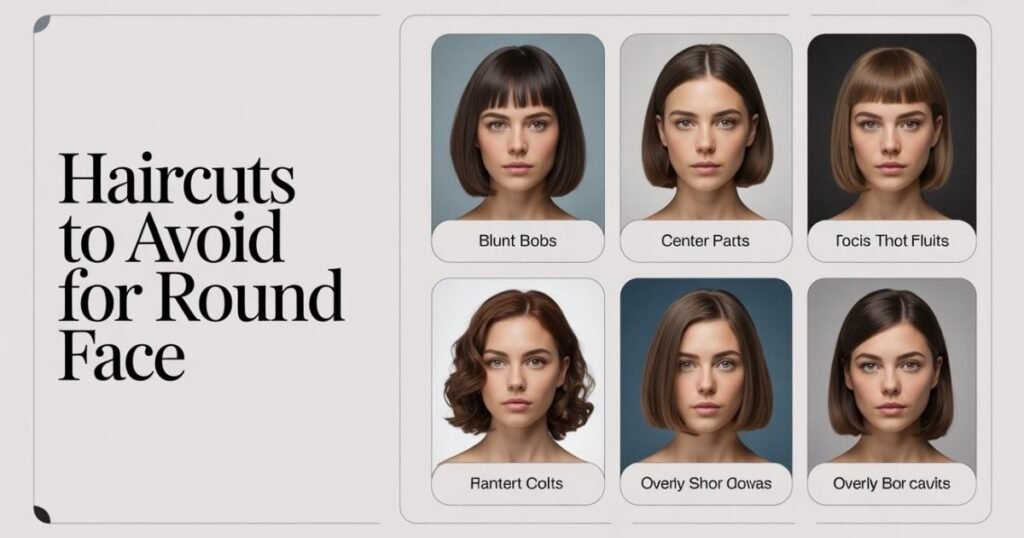 Avoid blunt bangs, make face wider, chin length haircuts, and cuts that add horizontal volume to the cheeks. One-length bobs or rounded cuts often exaggerate roundness, so opt for face-framing layers or layered haircuts for round face. Short hairstyles for round face women without height at the crown can make the face look wider.