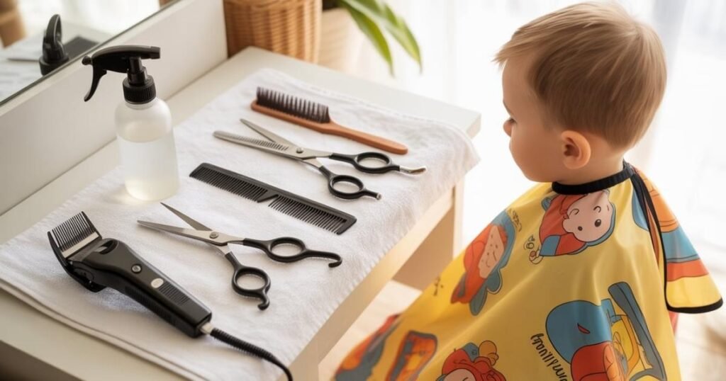 Essential haircut tools and equipment include clippers with multiple guards, barber shears, combs, a haircut cape, and a spray bottle. Using these tools ensures toddler haircut safety and makes trimming sides and back precise. Clippers help with quick, uniform cuts, while scissors are perfect for cutting the crown and top.