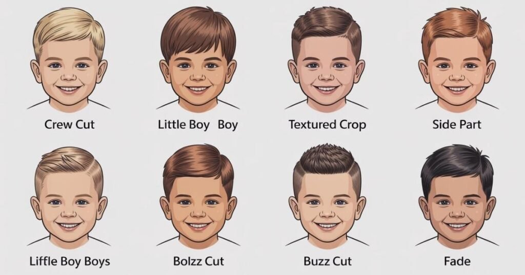 Classic boys haircut styles include buzz cuts, crew cuts, and simple side parts, which are timeless and easy to maintain. Trendy options like faux hawks, spikes, and textured layers allow older boys to express personality while keeping hair manageable. Combining classic boys haircut techniques with modern boys haircut trends produces styles that are school-friendly, stylish, and practical.