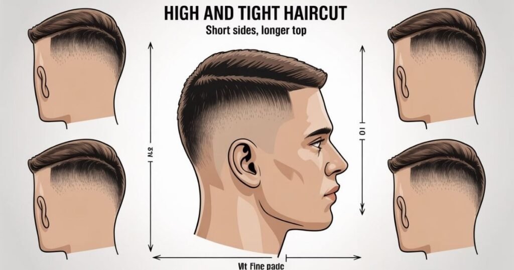 A high and tight is a short, sharp haircut with very short sides and a slightly longer top. It’s known for its military roots and low-maintenance style.
